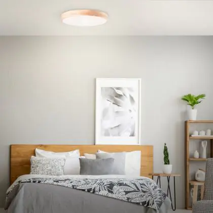 Beschreibung Brilliant Slimline Deckenleuchte Metall Holz Plastik Holz Weiß 34W 3800lm - 830-865 CCT | 500mm - Fernsteuerung Dimmbar