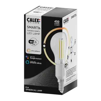 Die smarte LED-Glühbirne von Calex lässt sich über das so genannte Tuya Wifi steuern. Zum Wechseln der Farbtemperatur, An- und Ausschalten können Sie die kostenlose Calex App auf Ihrem Smartphone oder Tablett nutzen. Alternativ lässt sich das Produkt auch per Sprachsteuerung über einen Smart-Home-Lautsprecher (z.B. von Google oder Amazon) oder mit der Calex Smart Fernbedienung steuern.