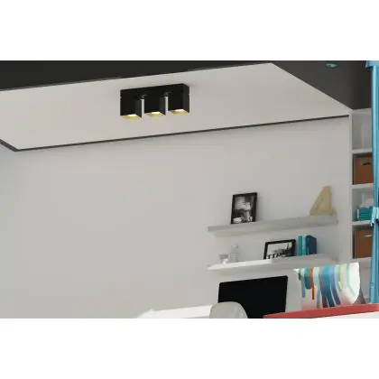 Beschreibung D'Lite Deckenleuchte Kubo Aluminium Schwarz Schwenkbar und Rotierbar | IP20 - Geeignet für 3x GU10