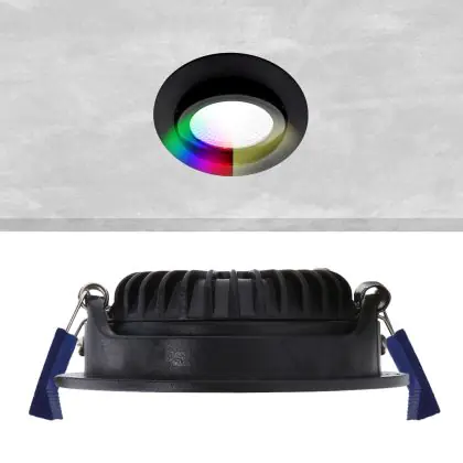 Beschreibung EcoDim Einbau Spot Schwarz 6W 450lm 60D 827- 860 Abstimmbares Weiß | RGB - 85mm - Ausschnitt 75mm - IP54 - Zigbee Dimmbar