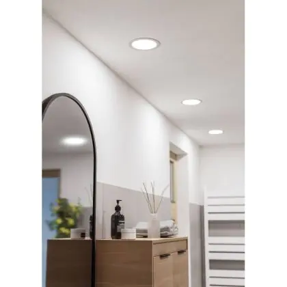 Der Eglo Einbau Spot Badezimmerbeleuchtung Fueva 6 Plastik Weiß 10.5W 1200lm - 827-840-865 CCT ist ein LED-Einbaustrahler, welcher Licht in der Farbtemperatur 2700K - 4000K - 6500K CCT ausstrahlt und durch eine lange Lebensdauer punktet. Die Einbauleuchte ersetzt konventionelle Halogenstrahler.