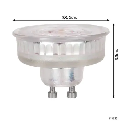 Die Eglo LED-Spot GU10 PAR16 4W 400lm 38D - 827 Extra Warmweiß | Dimmbar - Ersatz Für 57W ist eine effiziente GU10 LED-Lampe und der perfekte Ersatz für Ihre konventionelle Halogenlampe mit 57W und einem GU10-Sockel, bei welchem die zwei Stifte einen Abstand von 10 mm zueinander haben. Zudem strahlt das Produkt Licht in der Farbtemperatur 2700K - Extra Warmweiß aus und punktet durch eine lange Lebensdauer.