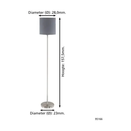 Beschreibung Eglo Stehlampe Pasteri Stahl Satin-Nickel Grau | IP20 - Geeignet für 1x E27