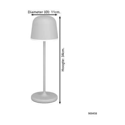 Beschreibung Eglo Tischlampe Mannera Aluminium Grau 2W 200lm - 830 Warmweiß | IP54 - Touch Dimmbar - USB-C
