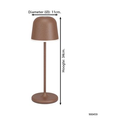 Beschreibung Eglo Tischlampe Mannera Aluminium Rostig 2W 200lm - 830 Warmweiß | IP54 - Touch Dimmbar - USB-C