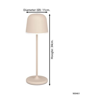 Beschreibung Eglo Tischlampe Mannera Aluminium Sanded 2W 200lm - 830 Warmweiß | IP54 - Touch Dimmbar - USB-C