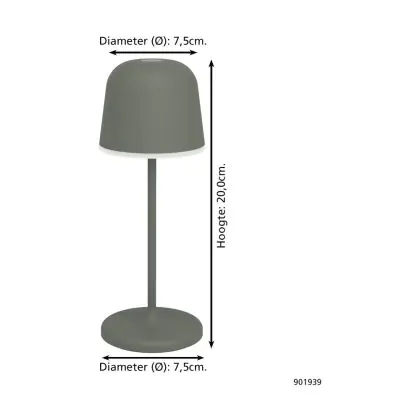 Beschreibung Eglo Tischlampe Mannera-S Aluminium Grün 1W 170lm - 825-830-840 CCT | IP54 - Touch Dimmbar
