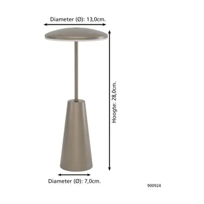 Beschreibung Eglo Tischlampe Piccola Stahl Bronze 2W 270lm - 824-830-840 CCT | IP54 - Touch Dimmbar - USB-C