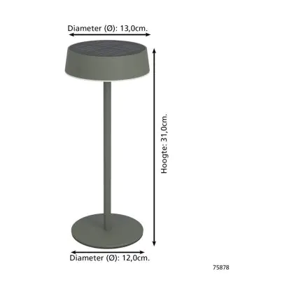 Die Eglo Tischlampe Simeri Stahl Grün 3W 250lm - 830-860 Abstimmbares Weiß | IP44 - Touch Dimmbar - USB-C ist eine moderne LED-Solarleuchte, welche Licht in der Farbtemperatur ausstrahlt und mit einer langen Lebensdauer punktet. Die Leuchte benötigt keinen Strom, stattdessen wird die Energie der Sonne genutzt.