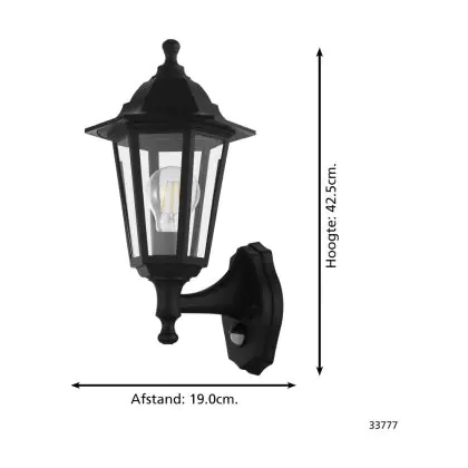 Beschreibung Eglo Wandleuchte Duanera Schwarz | IP44 - Geeignet für 1x E27 - Bewegungssensor