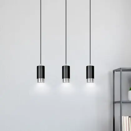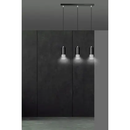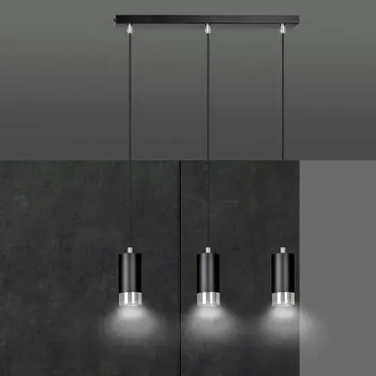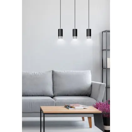 Die Emibig Pendelleuchte Fumiko Stahl Schwarz | Geeignet für 3x GU10 - Max 10W sorgt für eine angenehme Ausleuchtung und punktet durch modernes Design. Diese Leuchte ist speziell zur Montage an der Decke vorgesehen.