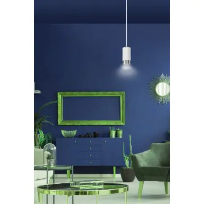 Die Emibig Pendelleuchte Fumiko Stahl Weiß | Geeignet für 1x GU10 - Max 10W sorgt für eine angenehme Ausleuchtung und punktet durch modernes Design. Diese Leuchte ist speziell zur Montage an der Decke vorgesehen.