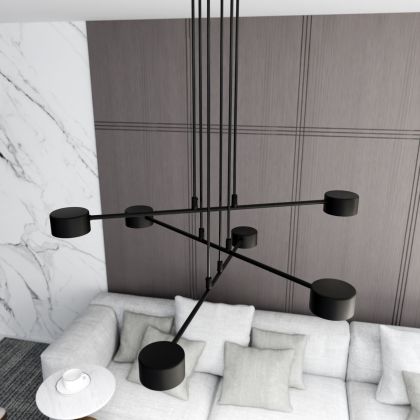 Die Emibig Pendelleuchte Modus Stahl Schwarz | Geeignet für 6x GX53 - Max 12W sorgt für eine angenehme Ausleuchtung und punktet durch modernes Design. Diese Leuchte ist speziell zur Montage an der Decke vorgesehen.