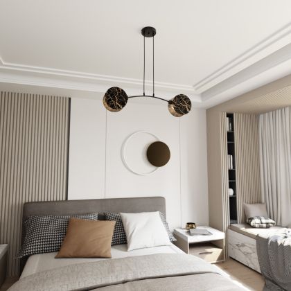 Die Emibig Pendelleuchte Motif Stahl Schwarz | Geeignet für 2x E27 - Max 15W sorgt für eine angenehme Ausleuchtung und punktet durch modernes Design. Diese Leuchte ist speziell zur Montage an der Decke vorgesehen.