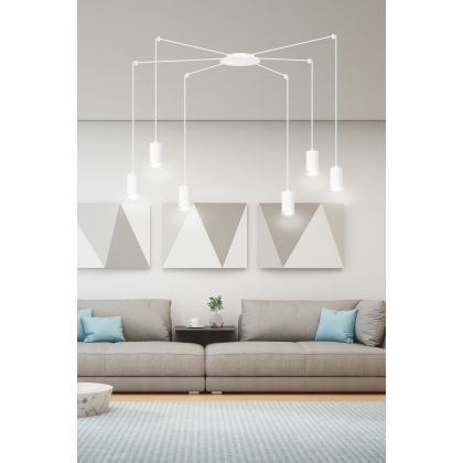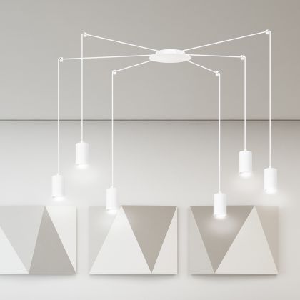 Die Emibig Pendelleuchte Traker Stahl Weiß | Geeignet für 6x GU10 - Max 10W sorgt für eine angenehme Ausleuchtung und punktet durch modernes Design. Diese Leuchte ist speziell zur Montage an der Decke vorgesehen.