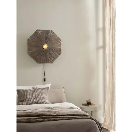Good&Mojo Wandleuchte Panama Rattan Grau | Geeignet für 1x E27