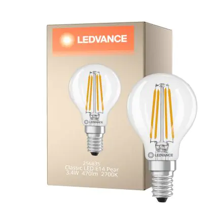Die Ledvance Classic LED E14 Birne Fadenlampe Klar 3.4W 470lm - 827 Extra Warmweiß | Ersatz Für 40W ist eine effiziente E14 LED-Lampe mit Retrodesign und der perfekte Ersatz für Ihre konventionellen 40W Lampen mit E14. Zudem strahlt sie Licht in der Farbtemperatur aus und punktet durch eine lange Lebensdauer.