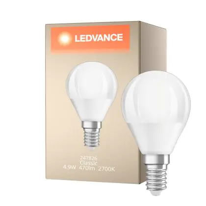 Die Ledvance Classic LED E14 Birne Matt 4.9W 470lm - 827 Extra Warmweiß | Dimmbar - Ersatz für 40W ist eine effiziente E14 LED-Lampe und der perfekte Ersatz für Ihre konventionellen 40W Lampen mit E14-Sockel. Zudem strahlt sie Licht in der Farbtemperatur 2700K - Extra Warmweiß aus und punktet durch eine lange Lebensdauer.