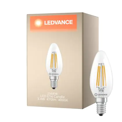 Die Ledvance Classic LED E14 Kerze Fadenlampe Klar 3.4W 470lm - 840 Kaltweiß| Ersatz Für 40W ist eine effiziente E14 LED-Lampe mit Retrodesign und der perfekte Ersatz für Ihre konventionellen 40W Lampen mit E14. Zudem strahlt sie Licht in der Farbtemperatur aus und punktet durch eine lange Lebensdauer.