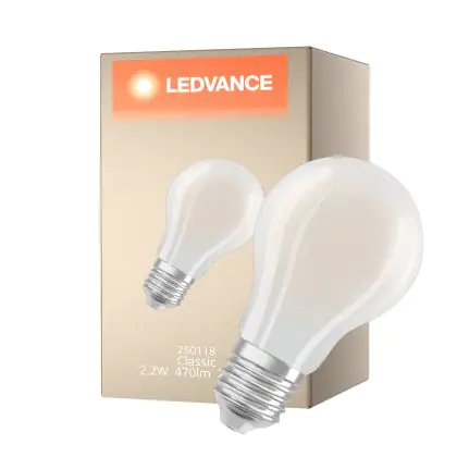 Die Ledvance Classic LED E27 Birne Fadenlampe Matt 2.2W 470lm - 827 Extra Warmweiß | Dimmbar Ersatz Für 40W ist eine effiziente E27 LED-Lampe mit Retrodesign und der perfekte Ersatz für Ihre konventionellen 40W Lampen mit E27. Zudem strahlt sie Licht in der Farbtemperatur 2700K - Extra Warmweiß aus und punktet durch eine lange Lebensdauer.
