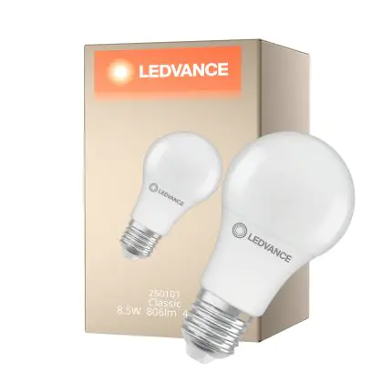 Die Ledvance Classic LED E27 Birne Matt 8.5W 806lm - 840 Kaltweiß | Ersatz Für 60W ist eine effiziente E27 LED-Lampe und der perfekte Ersatz für Ihre konventionellen 60W Lampen mit E27-Sockel. Zudem strahlt sie Licht in der Farbtemperatur 4000K - Kaltweiß aus und punktet durch eine lange Lebensdauer.