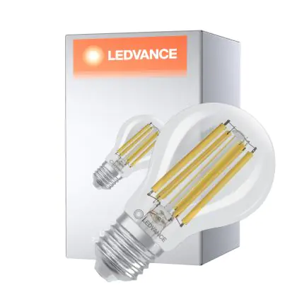 Die Ledvance Classic Superior LED Glühbirne E27 Birne Fadenlampe Klar 7.2W 1521lm - 840 Kaltweiß | Ersatz Für 100W ist eine effiziente E27 LED-Lampe mit Retrodesign und der perfekte Ersatz für Ihre konventionellen 100W Lampen mit E27. Zudem strahlt sie Licht in der Farbtemperatur 4000K - Kaltweiß aus und punktet durch eine lange Lebensdauer.