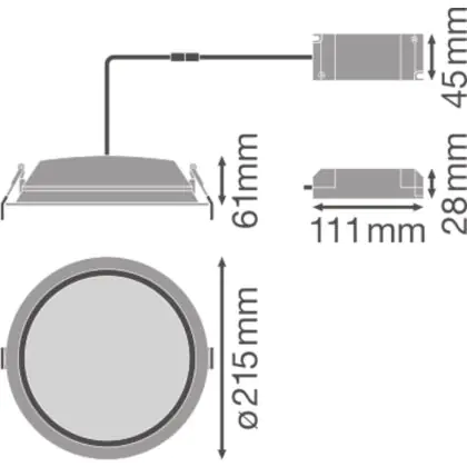 Beschreibung Ledvance LED Downlight Alu DN200 25W 2250lm 100D - 830 Warmweiß | 215mm - IP44