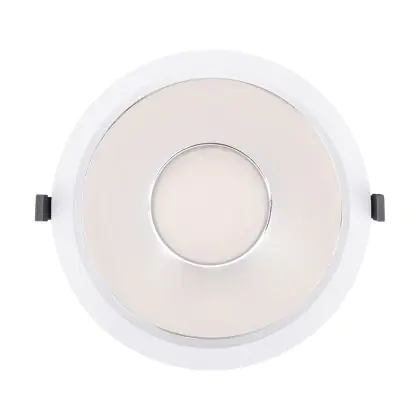 Bei dem Produkt “Ledvance LED Downlight Comfort Aluminium Weiß 30W 3600lm 55D - 930-940 CCT | 215mm - Ausschnitt 200mm - IP44 - Höchste Farbwiedergabe - UGR” handelt es sich um einen effizienten LED-Deckenspot, welcher Licht in der Farbtemperatur ausstrahlt und durch eine lange Lebensdauer punktet. Das Downlight ist recycelbar und umweltfreundlich, denn es enthält kein Quecksilber.
