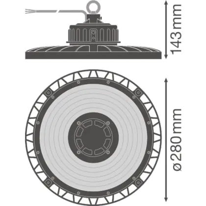 Die LED-Hallenleuchte hat einen niedrigen Energieverbrauch von nur 93 Watt und ersetzt somit herkömmliche Deckenleuchten mit 200 Watt. Aufgrund der höheren Effizienz sparen Sie rund 55 % Energiekosten ein.