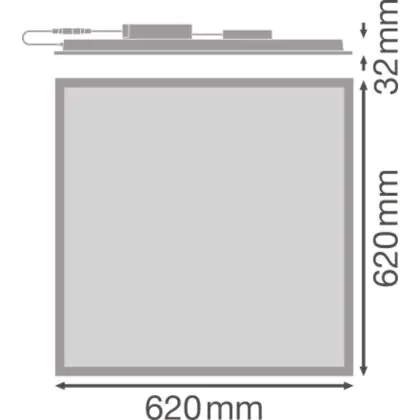 Beschreibung Ledvance LED Panel Comfort Aluminium Weiß 28W 3640lm - 840 Kaltweiß | 62.5x62.5cm - UGR < 19
