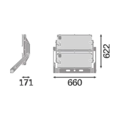 Beschreibung Ledvance LED-Scheinwerfer Max Radial 45 Aluminium Grau 900W 153700lm 45d - 830 Warmweiß | IP66 - Symmetrisch
