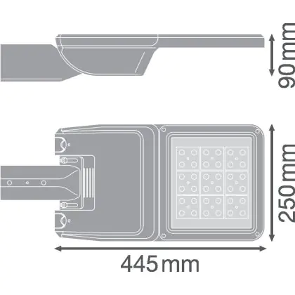 Beschreibung Ledvance LED-Straßenbeleuchtung Flex klein RV25ST Grau 36W 4850lm 25x145D - 727 Extra Warmweiß | IP66 – Asymmetrisch