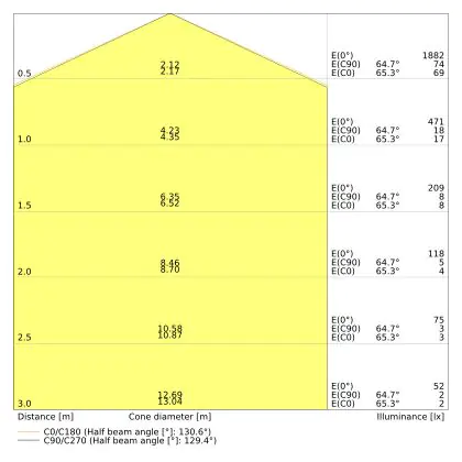 ![]() Der IP-Wert zeigt an, wie gut das Leuchtmittel gegen das Eindringen von Feuchtigkeit und Staub geschützt ist. Die erste Ziffer gibt den Schutz gegen Staub an: von 0 = „gar keinen Schutz“ bis 6 = „komplett staubdicht“. Die zweite Ziffer zeigt den Schutz gegen Feuchtigkeit an: von 0 = „gar keinen Schutz“ bis 8 = „geschützt gegen Untertauchen“. Daraus resultiert: Produkte mit einer IP44-Schutzklasse sind vor Spritzwasser geschützt, Produkte mit IP65 oder höher sind (komplett) staub- und wasserdicht. |
