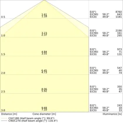 ![]() Der IP-Wert zeigt an, wie gut das Leuchtmittel gegen das Eindringen von Feuchtigkeit und Staub geschützt ist. Die erste Ziffer gibt den Schutz gegen Staub an: von 0 = „gar keinen Schutz“ bis 6 = „komplett staubdicht“. Die zweite Ziffer zeigt den Schutz gegen Feuchtigkeit an: von 0 = „gar keinen Schutz“ bis 8 = „geschützt gegen Untertauchen“. Daraus resultiert: Produkte mit einer IP44-Schutzklasse sind vor Spritzwasser geschützt, Produkte mit IP65 oder höher sind (komplett) staub- und wasserdicht. |