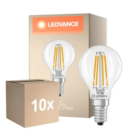 Die Mehrfachpackung 10x Ledvance Classic LED E14 Birne Fadenlampe Klar 3.4W 470lm - 827 Extra Warmweiß | Ersatz Für 40W ist eine effiziente E14 LED-Lampe mit Retrodesign und der perfekte Ersatz für Ihre konventionellen 40W Lampen mit E14. Zudem strahlt sie Licht in der Farbtemperatur aus und punktet durch eine lange Lebensdauer.