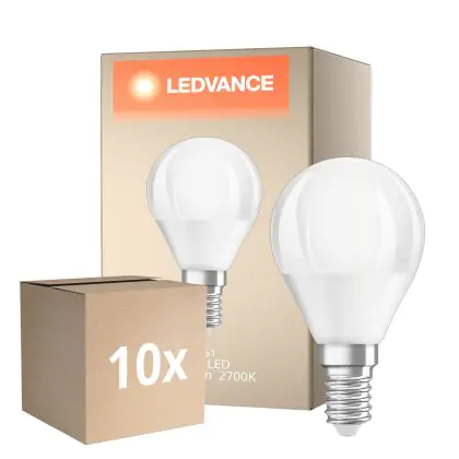Die Mehrfachpackung 10x Ledvance Classic LED E14 Birne Matt 4.9W 470lm - 827 Extra Warmweiß | Dimmbar - Ersatz Für 40W ist eine effiziente E14 LED-Lampe und der perfekte Ersatz für Ihre konventionellen 40W Lampen mit E14-Sockel. Zudem strahlt sie Licht in der Farbtemperatur aus und punktet durch eine lange Lebensdauer.