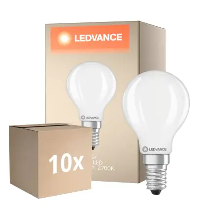 Die Mehrfachpackung 10x Ledvance Classic LED E14 Kugel Fadenlampe 5.9W 806lm - 827 Extra Warmweiß | Dimmbar - Ersatz Für 60W ist eine effiziente E14 LED-Lampe mit Retrodesign und der perfekte Ersatz für Ihre konventionellen 60W Lampen mit E14. Zudem strahlt sie Licht in der Farbtemperatur aus und punktet durch eine lange Lebensdauer.