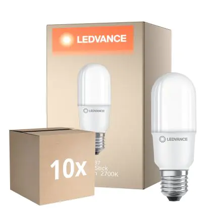 Die Mehrfachpackung 10x Ledvance LED Classic Stick E27 Stick Matt 9W 1050lm - 827 Extra Warmweiß | Ersatz Für 75W ist eine effiziente E27 LED-Lampe und der perfekte Ersatz für Ihre konventionellen 75W Lampen mit E27-Sockel. Zudem strahlt sie Licht in der Farbtemperatur 2700K - Extra Warmweiß aus und punktet durch eine lange Lebensdauer.
