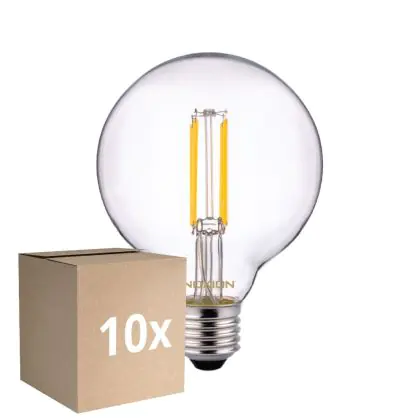 Die Mehrfachpackung 10x Noxion Lucent Fadenlampe LED E27 Globe Klar 7W 806lm - 827 Extra Warmweiß | Dimmbar - Ersatz Für 60W ist eine effiziente E27 LED-Lampe mit Retrodesign und der perfekte Ersatz für Ihre konventionellen 60W Lampen mit E27. Zudem strahlt sie Licht in der Farbtemperatur aus und punktet durch eine lange Lebensdauer.