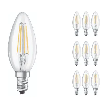 Mehrfachpackung 10x Osram CLASSIC LED E14 Kerze Fadenlampe Klar 4W 470lm - 827 Extra Warmweiß | Ersatz Für 40W