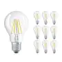 Die Mehrfachpackung 10x Osram CLASSIC LED E27 Birne Fadenlampe Klar 4W 470lm - 827 Extra Warmweiß | Ersatz Für 40W ist eine effiziente E27 LED-Lampe mit Retrodesign und der perfekte Ersatz für Ihre konventionellen 40W Lampen mit E27. Zudem strahlt sie Licht in der Farbtemperatur 2700K - Extra Warmweiß aus und punktet durch eine lange Lebensdauer.