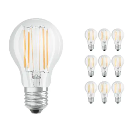 Beschreibung Mehrfachpackung 10x Osram CLASSIC LED E27 Birne Fadenlampe Klar 7.5W 1055lm - 827 Extra Warmweiß | Dimmbar - Ersatz Für 75W