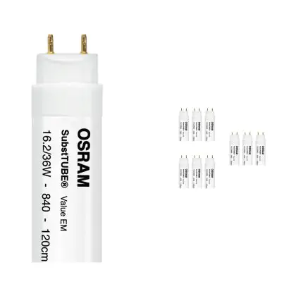 Beschreibung Mehrfachpackung 10x Osram SubstiTUBE LED T8 Value (EM Mains) Standard Output 16.2W 1700lm - 840 Kaltweiß | 120cm - Ersatz für 36W