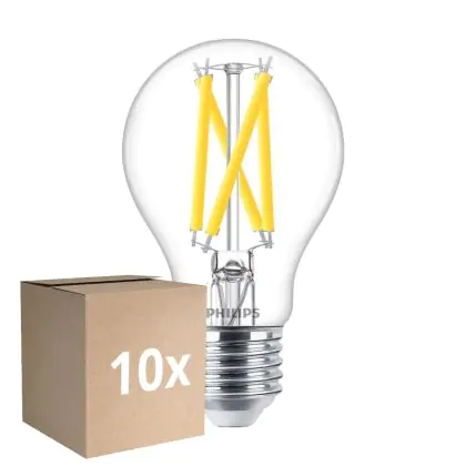 Die Mehrfachpackung 10x Philips Master LED E27 Birne Fadenlampe Klar 7.2W 1055lm - 922-927 Dim To Warm | Höchste Farbwiedergabe - Dimmbar - Ersatz Für 75W ist eine effiziente E27 LED-Lampe mit Retrodesign und der perfekte Ersatz für Ihre konventionellen 75W Lampen mit E27. Zudem strahlt sie Licht in der Farbtemperatur aus und punktet durch eine lange Lebensdauer.