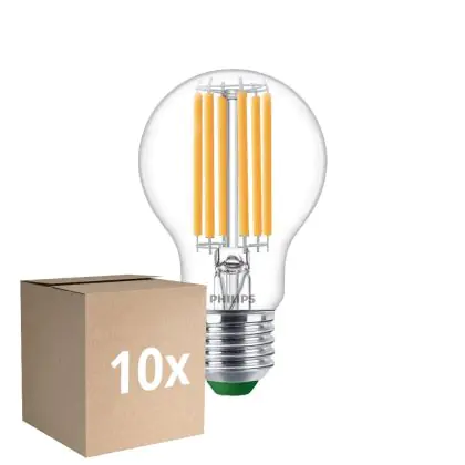 Die Mehrfachpackung 10x Philips MASTER LED Glühbirne Ultra Efficient E27 Birne Klar 5.2W 1095lm - 830 Warmweiß | Ersatz Für 75W ist eine effiziente E27 LED-Lampe und der perfekte Ersatz für Ihre konventionellen 75W Lampen mit E27-Sockel. Zudem strahlt sie Licht in der Farbtemperatur aus und punktet durch eine lange Lebensdauer.