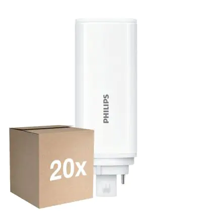 Die Mehrfachpackung 20x Philips CorePro PL-T LED Glühbirne HF 6.5W - 830 Warmweiß | 4-Pins - Ersatz Für 18W ist eine effiziente LED-Energiesparlampe und der perfekte Ersatz für Ihre konventionelle Kompaktleuchtstofflampe. Zudem strahlt das Produkt Licht in der Farbtemperatur aus und punktet durch eine lange Lebensdauer.