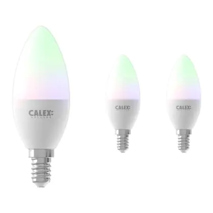Beschreibung Mehrfachpackung 3x Calex Smart Tuya Wifi E14 Kerze 5W 470lm - 822-840 Abstimmbares Weiß | RGBW - Dimmbar - Ersatz für 40W