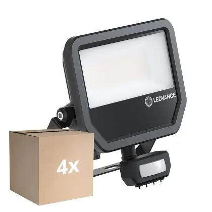 Mehrfachpackung 4x Ledvance LED-Scheinwerfer Aluminium Schwarz 41W 5500lm 100D - 830 Warmweiß | IP65 - Bewegungs- und Lichtsensor - Symmetrisch