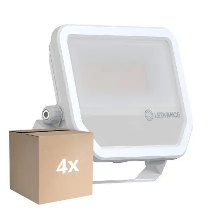 Der Mehrfachpackung 4x Ledvance LED-Scheinwerfer Aluminium Weiß 41W 6000lm 100D - 840 Kaltweiß | IP66 - Symmetrisch ist ein Scheinwerfer und strahlt Licht in der Farbtemperatur aus. Zudem punktet der LED-Scheinwerfer durch eine lange Lebensdauer.