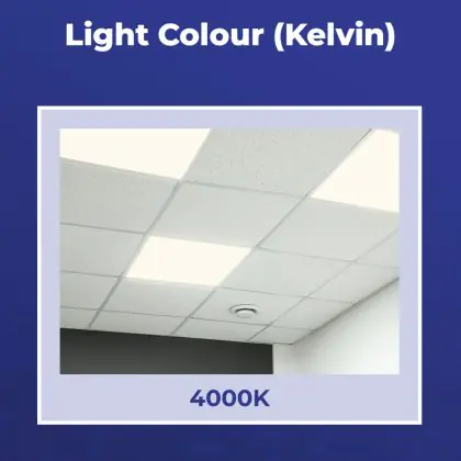 Das LED-Panel kommt mit der Farbtemperatur 4000K - Kaltweiß daher. Als Faustregel gilt: Je niedriger der Kelvinwert, desto gemütlicher wirkt das Licht.